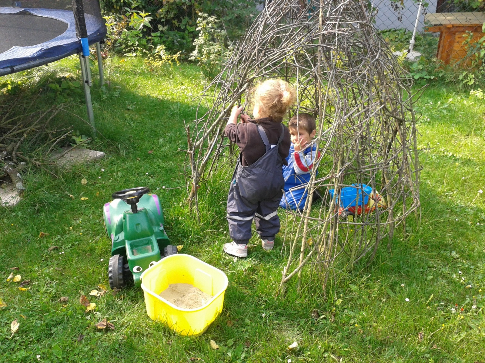 Zur Abwechslung gibt es ca. 100 Meter entfernt einen großen, öffentlichen Spielplatz mit Klettergerüst und Karussell und auch weitere Spielplätze in der näheren Umgebung. Darüber hinaus machen wir Ausflüge in den Wald, auf die Felder oder auf einen Bauernhof.